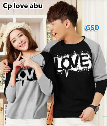 Cp love Abu- 52rb min 3psg ecer 57 rb fit M semua bhn kaos sablon tgn pjg cewe Ld80cm pjg58cm +cowo Ld94cm pjg62cm (450gr)