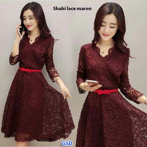 Shaby maroon@55rb min 3pcs ecer 60rb bahan brukat full furing Ld9cm Pjg85cm karet pinggang belakang Free belt Fit L (300gr