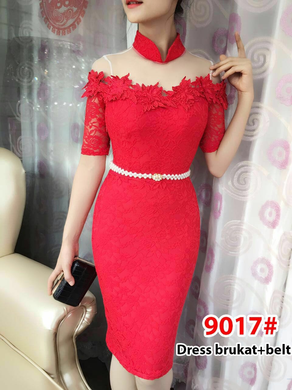 Dress import 9017 red@130rb min 3pcs ecer 135rb bahan brukat kombi tile+ belt mutiara fit to M (400gr)