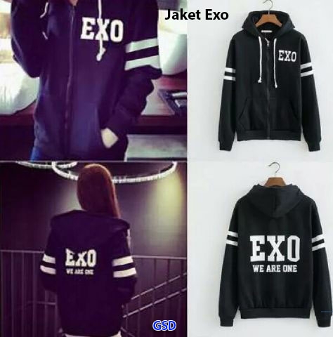 jkt exo htm@48rb min 3pcs ecer 53rb fit M bahan babyterry Ld96cm Pjg58cm Zipper depan hodie tali lengan panjang (400gr)