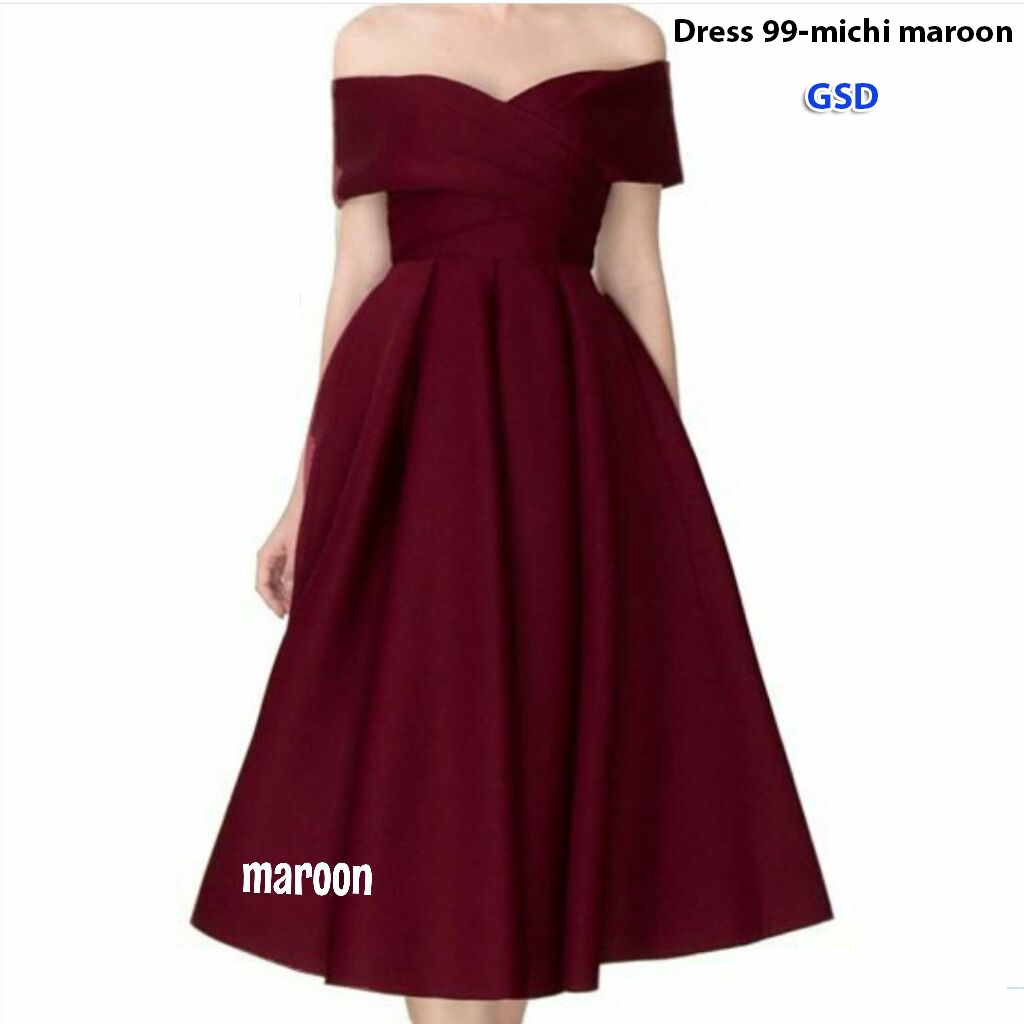Dress 99 maroon@115rb min 3pcs ecer 120rb fit M bahan weges tebal belakang zipper Ld80cm Pjg100cm (720gr)
