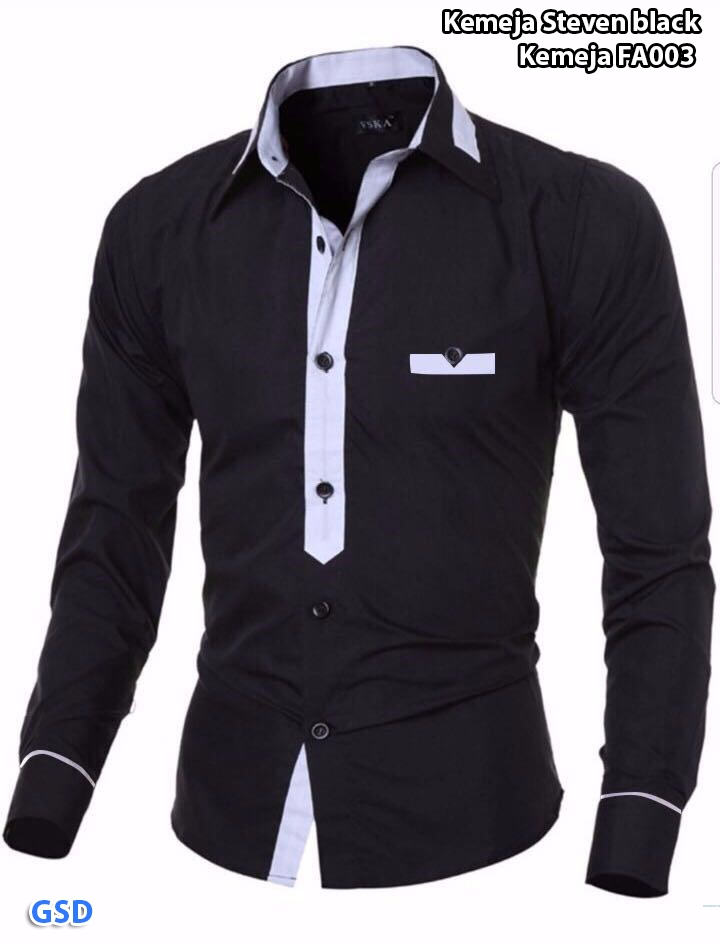 Kemeja steven black@48rb min 3pcs ecer 53rb fit M bahan katun streth lengan panjang kancing hidup Ld88cm Pjg65cm (300gr)