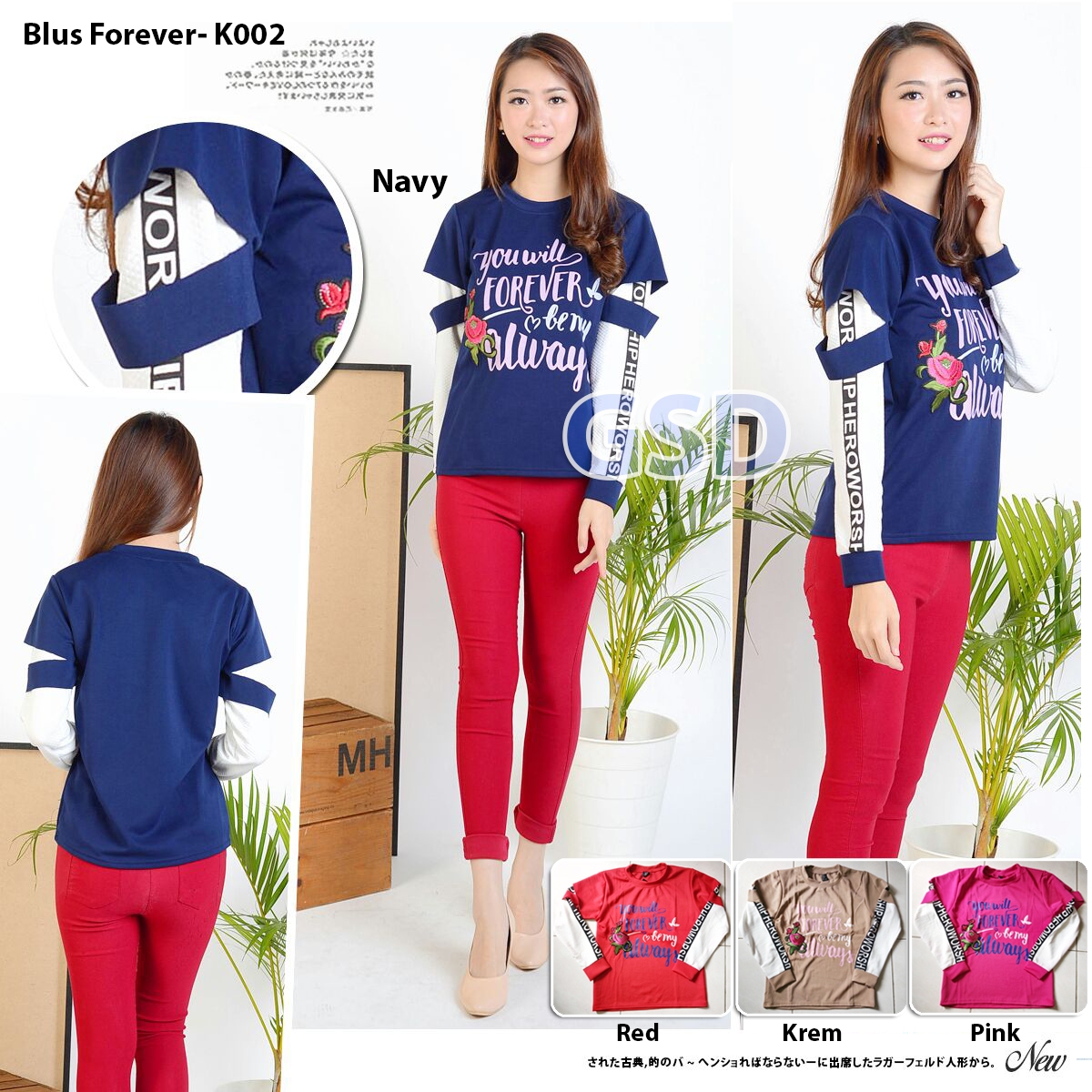 Blus forever@45rb seri 4pcs ecer 50rb bahan kaos Ld86cm Pjg53cm fit M (400gr)