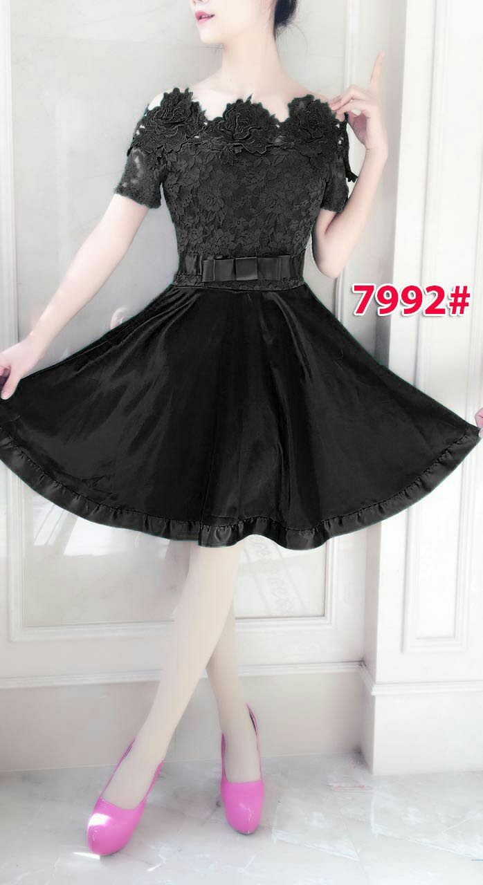 Dress import 7992 black@160rb min 3pcs ecer 165rb terusan dress brukat kombi satin fit M (450gr)