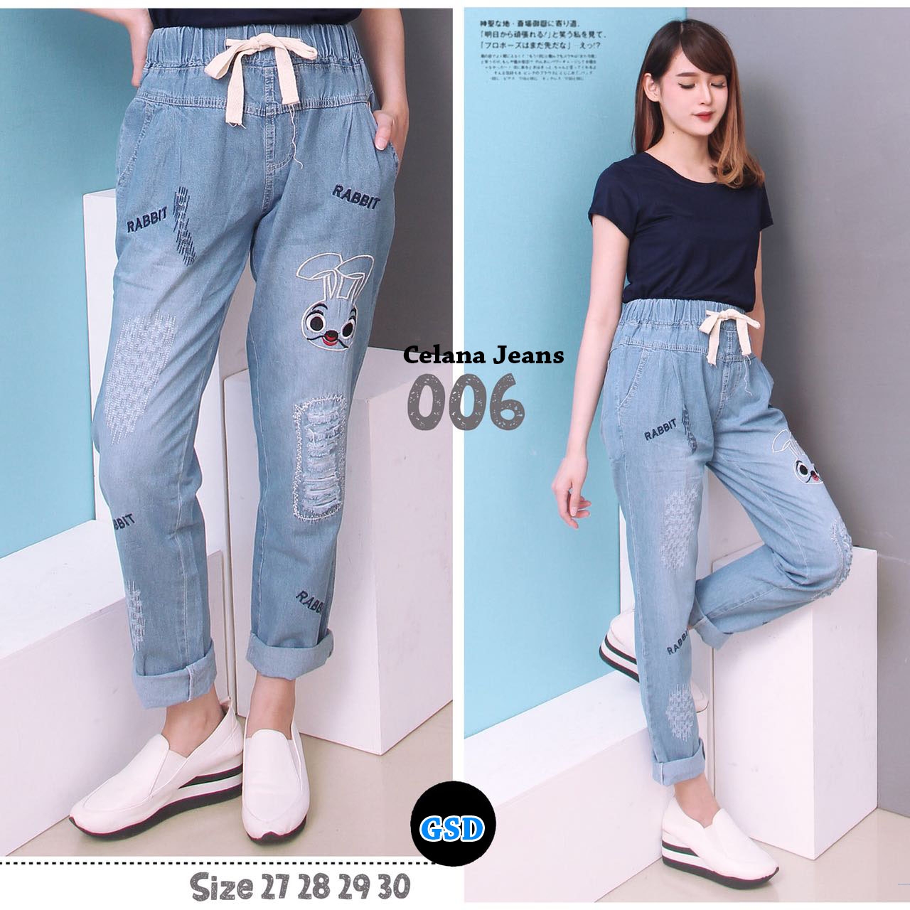 Celana jean 006@80rb seri 4pcs size 27.28.29.30 ecer 85rb bahan jeans lemes ngak streth,pinggang karet serut tali (400gr)