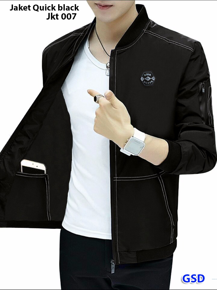 Jaket Quick black@68rb min 3pcs ecer 73rb fit M bahan weges lengan panjang seleting depan saku kiri kanan Ld90cm Pjg65cm (420gr)