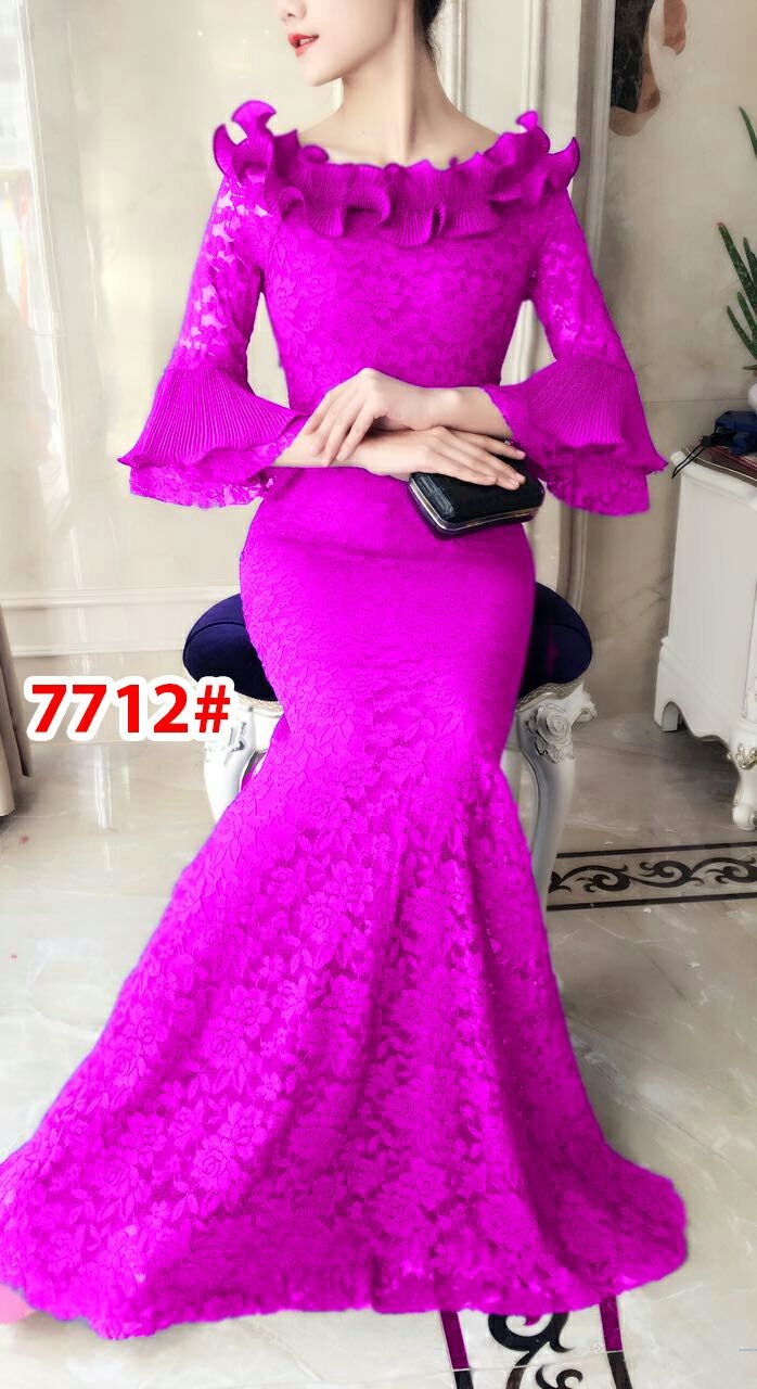 Longdress import 7712 pink@168rb min 3pcs ecer 173rb longdress sabrina bahan brukat streth furing Ld80cm Pjg130cm (400gr)