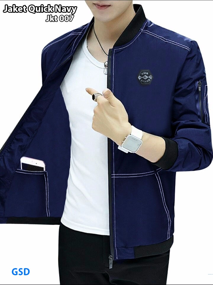 Jaket Quick navy@68rb min 3pcs ecer 73rb fit M bahan weges lengan panjang seleting depan saku kiri kanan Ld90cm Pjg65cm (420gr)