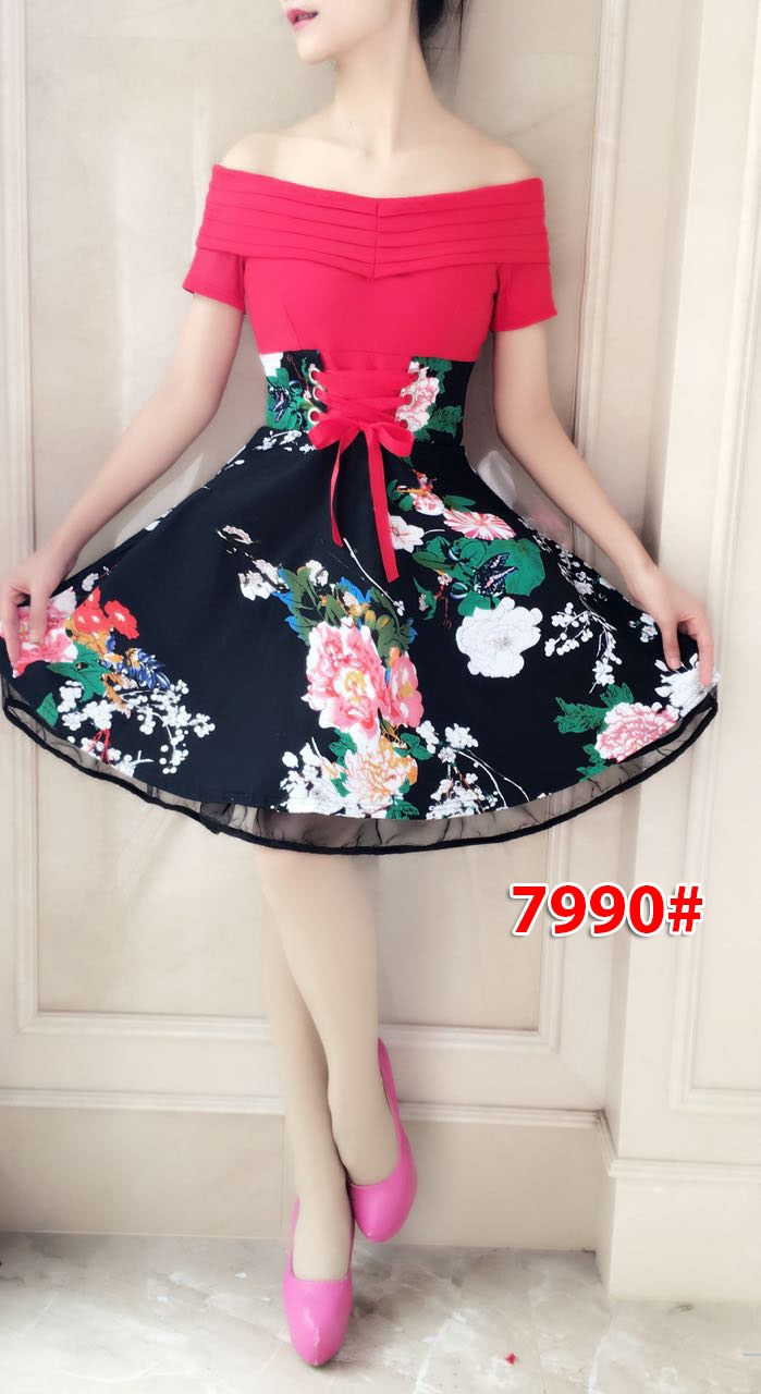 Dress 7990 red@135rb min 3pcs ecer 140rb bahan katun streth Ld80cm Pjg75cm +belt lepas fit M (400gr)