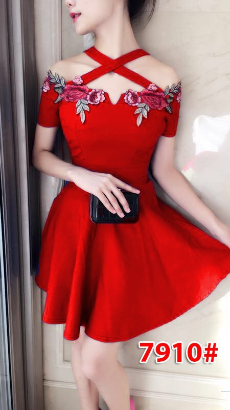 Dress import 7910 red@135rb min 3pcs ecer 140rb dress bahan katun streth Ld80cm Pjg75cm fit M (300gr)