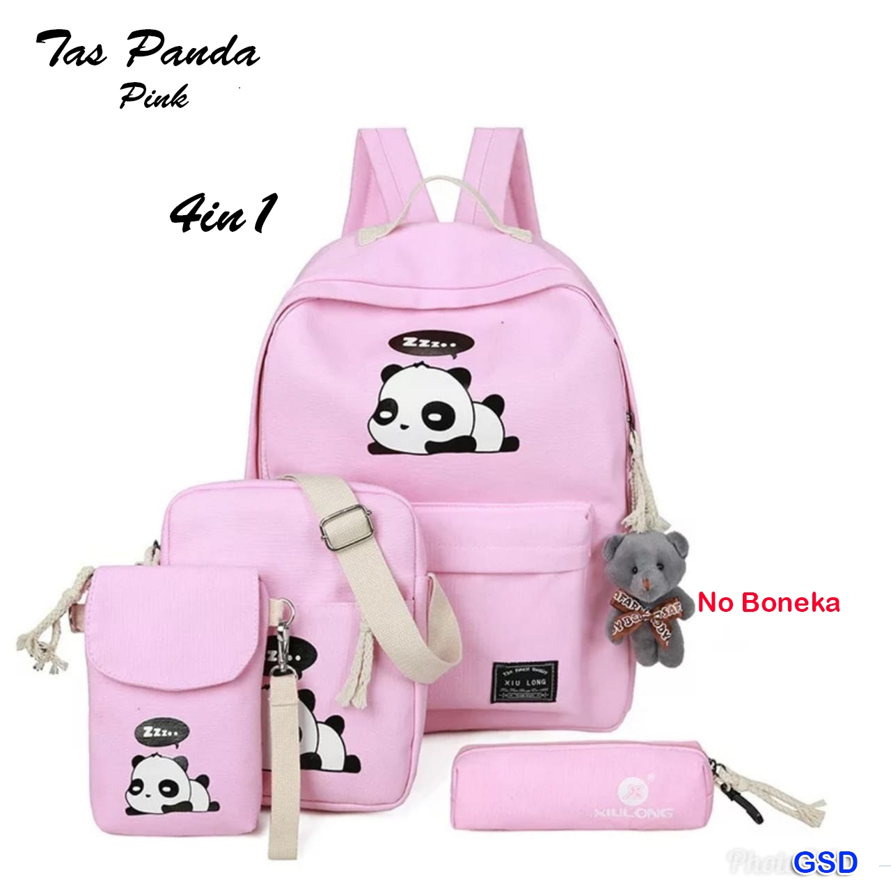 Tas panda 4in1 pink@50rb min 3pcs ecer 55rb tinggi 40cm Panjang 30cm Lebar 10cm (420gr)