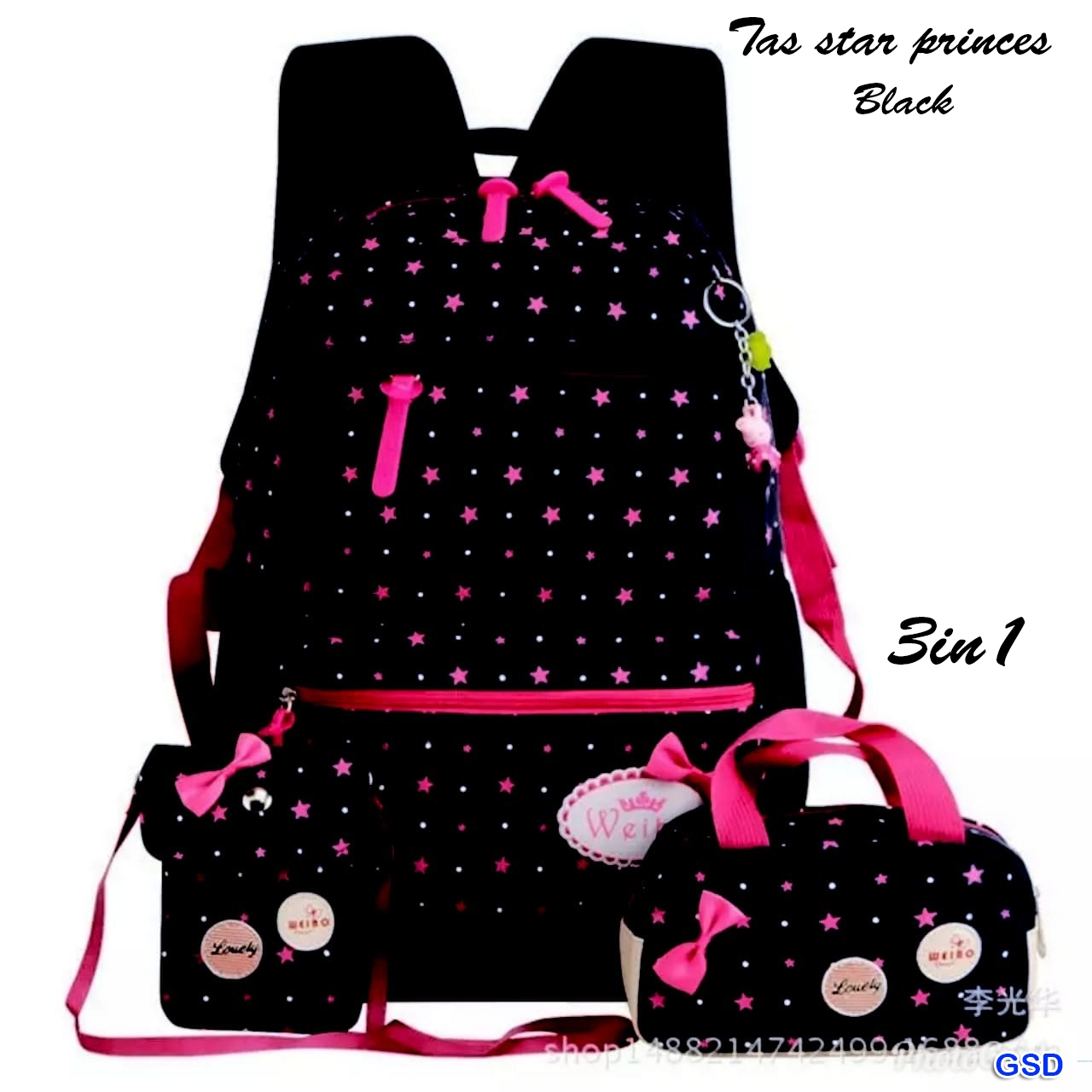 Tas star princes black@50rb min 3pcs ecer 55rb tinggi 40cm Panjang 30cm Lebar 10cm (420gr)