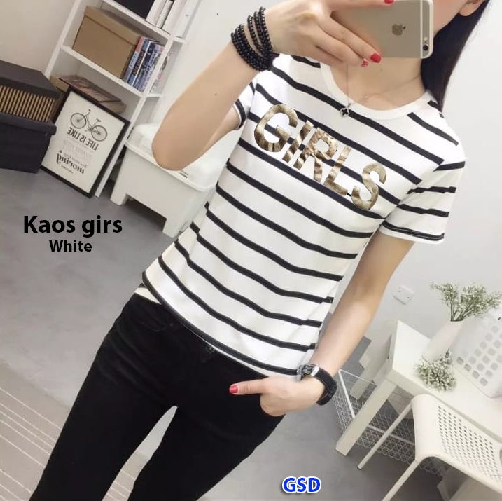 Kaos salur girs@16rb min 3pcs ecer 21rb bahan spandek salur sablon LD80cm Pjg63cm Fit M (200gr)