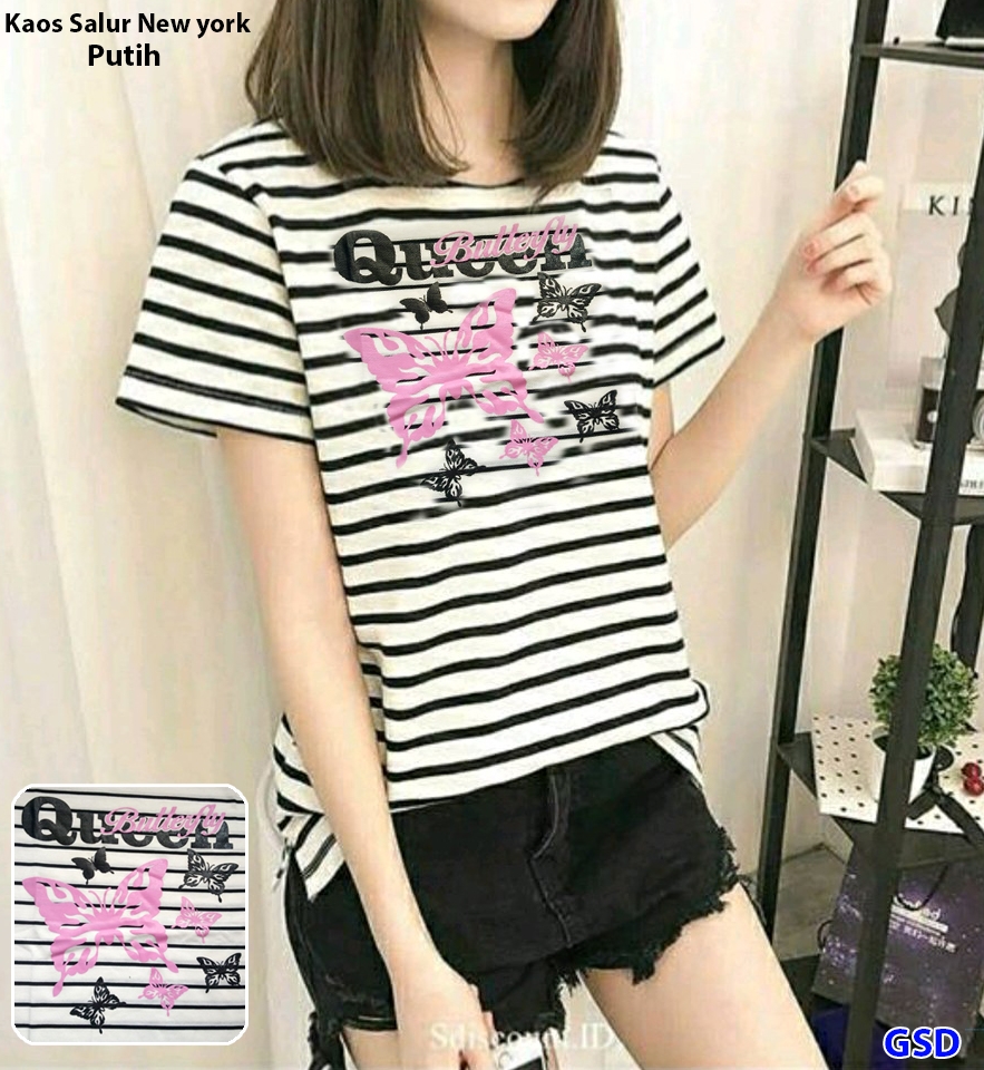 Kaos butterfly salur putih@16rb min 3pcs ecer 21rb bahan kaos salur Ld80cm Pjg60cm Fit M (200gr)