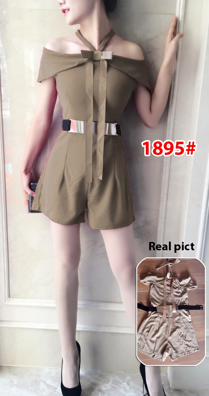 Jumpsuit 1895 coklat@115rb min 3pcs ecer 120rb bahan scuba Ld80cm Pjg70cm fit M+ belt karet gold (400gr)