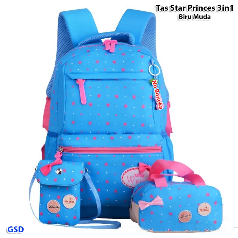 Tas star princes 3in1 biru muda@50rb min 3pcs ecer 55rb tinggi 40cm Panjang 30cm Lebar 10cm (420gr)
