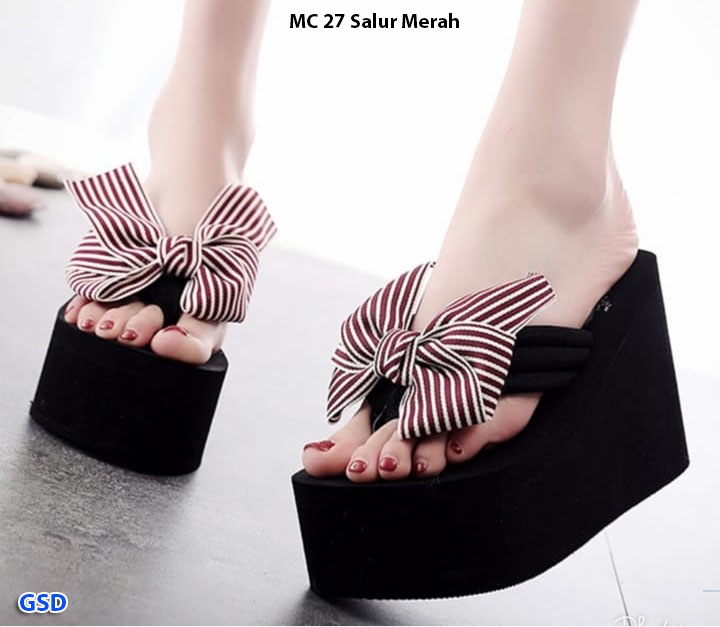 Sandal mc 27 salur red@48rb seri 4pcs (size 37.38.39.40) ecer 53rb bahan spon tinggi 10cm (800gr)