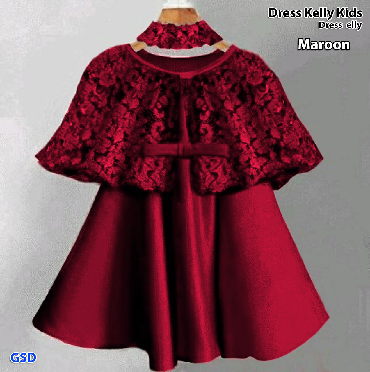 Dress kelly maroon@55rb min 3pcs ecer 60rb bahan brukat kombi saten,terusan dress belakang seleting Ld66cm Pjg56cm +bando brukat Fit 3thn (No size,tergantung anak) (250gr)