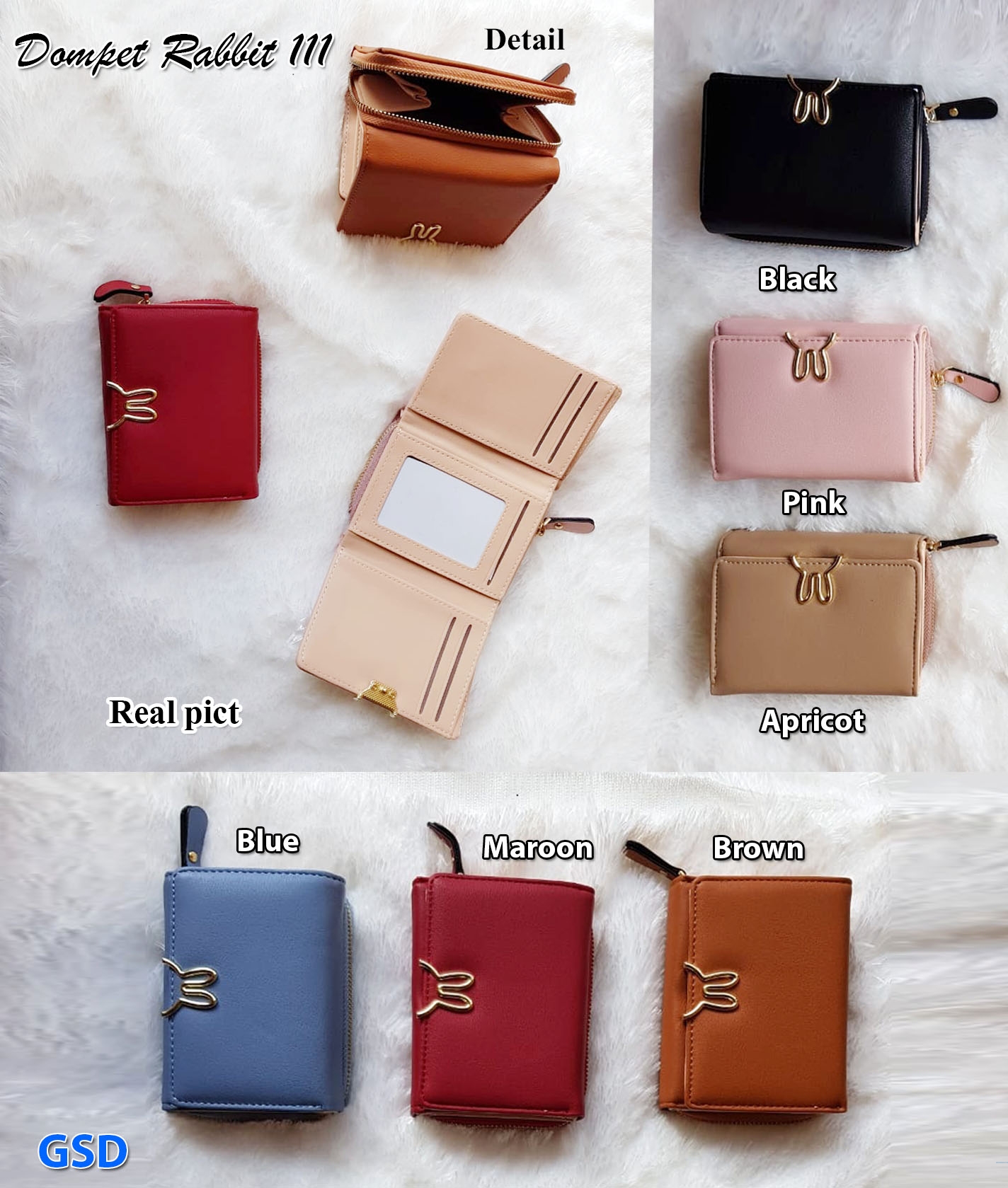 Dompet rabbit@52rb seri 6pcs (6warna) ecer 57rb bahan kulit ,1 kantong koin, 1kantong uang kertas tebal 3cm Pjg11cm Lebar 8cm (120gr)
