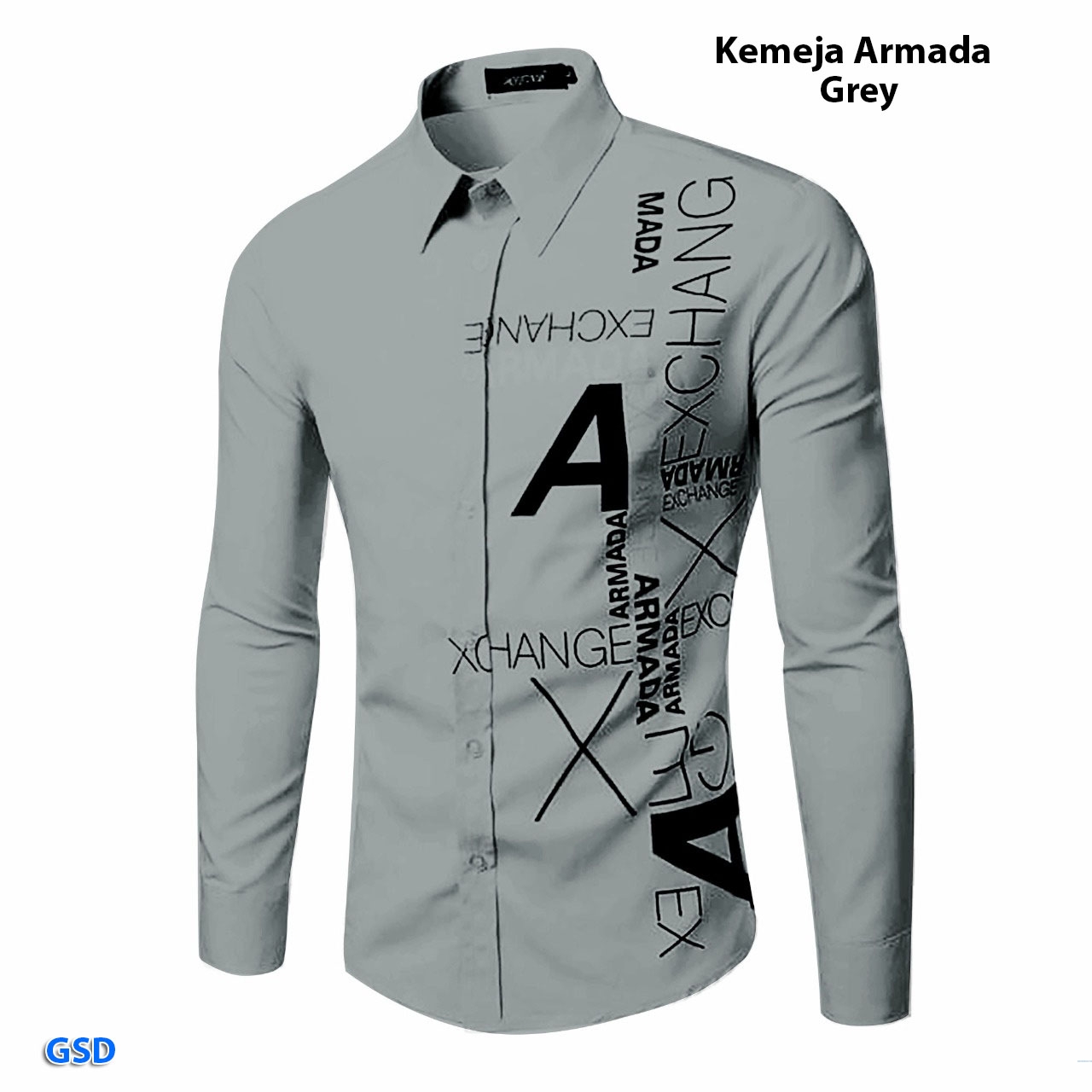 Kemeja Armada grey@66rb min 3pcs ecer 71rb bahan katun streth sablon lengan panjang Ld96cm Pjg67cm Fit M (220gr)