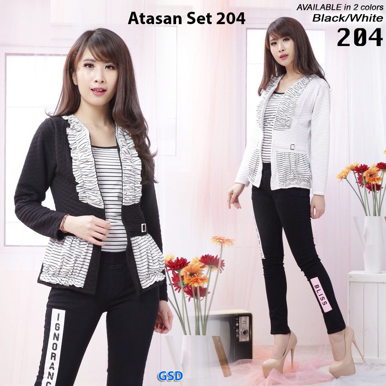Atasan set 204@75rb seri 2pcs (2warna) ecer 80rb inner tanktop salur Ld80cm Pjg65cm +cardi waffle lengan panjang ,Pjg cardi 58cm (420gr)