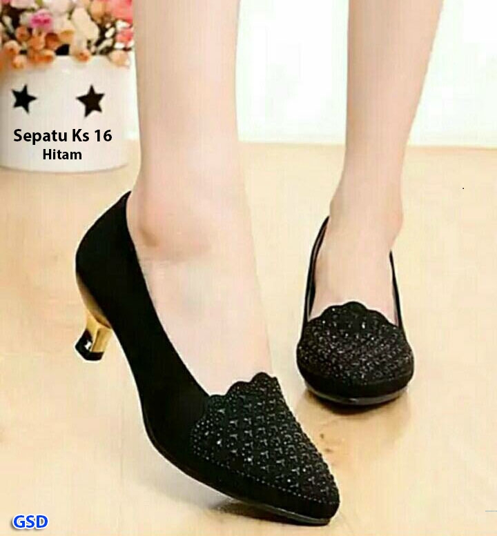 Sepatu ks16 hitam@53rb seri 5psg(Size 36-40) bahan bludru tinggi 6cm (450gr)