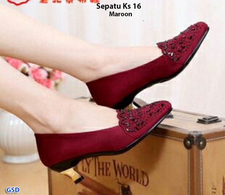 Sepatu ks16 maroon@53rb seri 5psg(Size 36-40) bahan bludru tinggi 6cm (450gr)