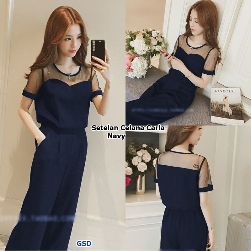 st carla navy@65rb min 3pcs ecer 70rb bahan twiscone kombi tile hitam,blus Ld90cm Pjg60cm +celana saku kiri kanan Pjg85cm Fit M (400gr)