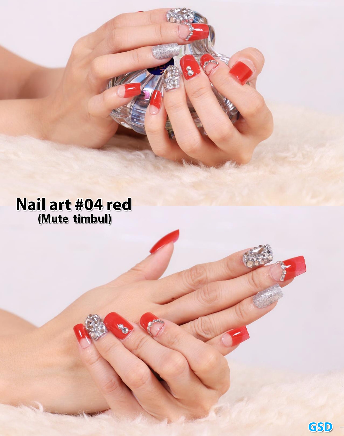 Nail Art #04 red@ 1kotak isi 12 pasang,Grosir 45rb min 3 Kotak Harga 1 kotak Ecer 50rb Kuku Plastik udah ada lem,tinggal dipasang.seperti kuku asli (Mute timbul)