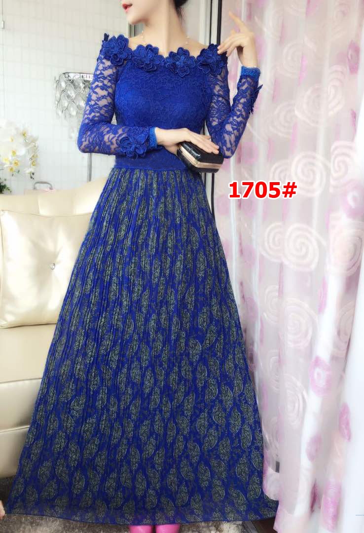 MAxi import 1705 biru@105rb min 3pcs ecer 110rb bahan brukat kombi prisket sifon furing Ld80cm Pjg130cm Fit M (600gr)