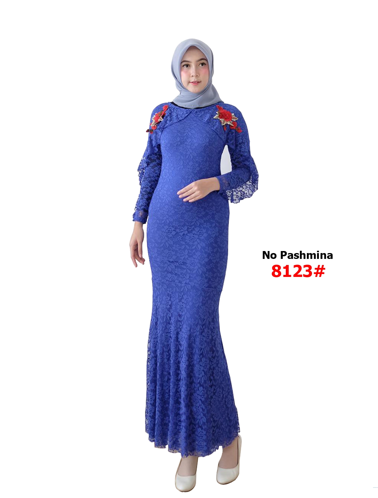 Maxi import 8123 biru@ 175rb min 3pcs ecer 180rb bahan brukat furing Ld80cm Pjg130cm Fit M No pashmina(600gr)