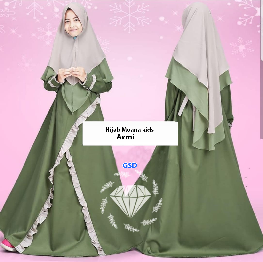 hijab moana kids armi@85rb min 3pcs ecer 90rb bahan baletoli,maxi lengan panjang seleting depan, Ld84cm Pjg112cm +bergo ceruti Pjg50cm fit anak 7-9thn No Size tergantung anak (350gr)
