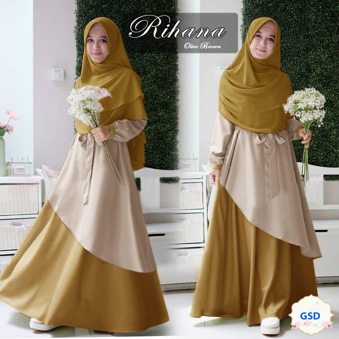 Rihana olive@150rb min 3pcs ecer 155b fit L bahan spandek maxmara ziper depan terusan dress lengan panjang tali ikat Ld100cm Pjg135cm+bergo sifon Pjg70cm (850gr)