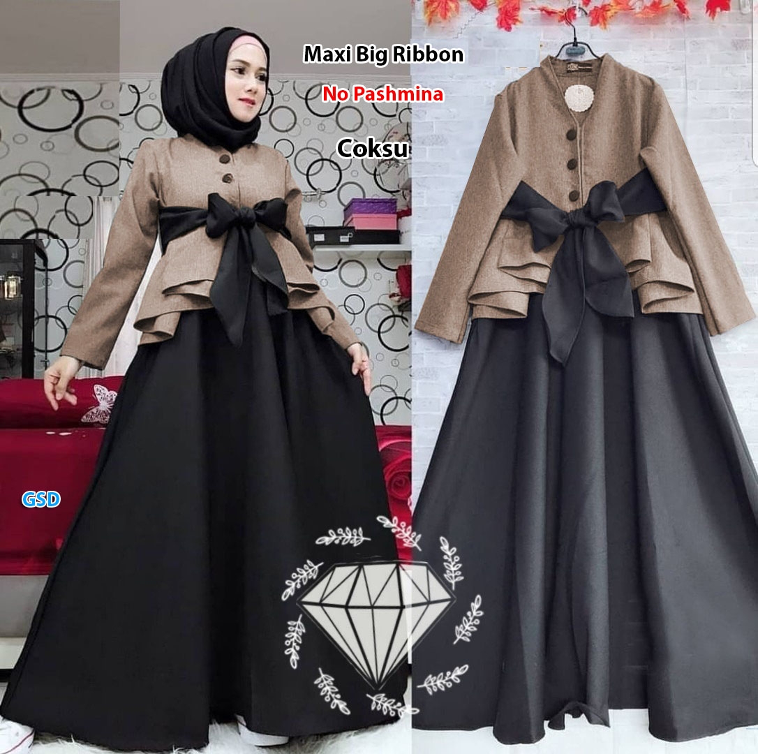 Maxi big ribbon coksu@78rb min 3pcs Ecer 83rb bahan baletoli,maxi lengan panjang depan kancing hidup ,pinggang tali ikat Ld96cmcm Pjg132cm Fit L (500gr)