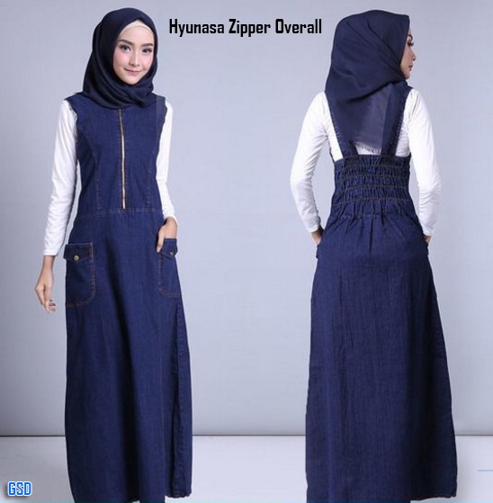 Hyunaza zipper overall@100rb min 3pcs ecer 105rb fit M blus kaos putih lengan panjang Ld80cm Pjg58cm +Overall jeans depan sleting pinggang belakang karet saku kiri kanan Pjg125cm Fit M(800gr) No Pashmina