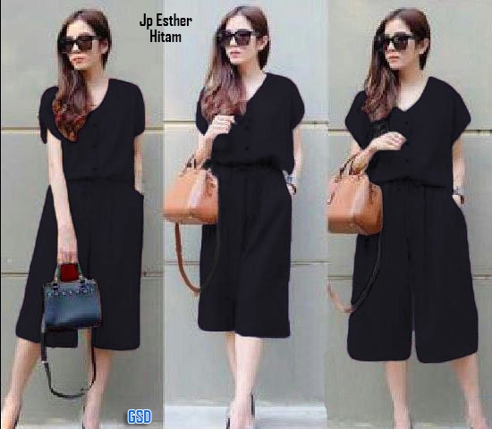 Jp esther hitam@48rb min 3pcs ecer 53rb bahan katun rayon ,pinggang karet,depan kancing hidup Ld114cm Pjg110cm Fit XL (450gr)