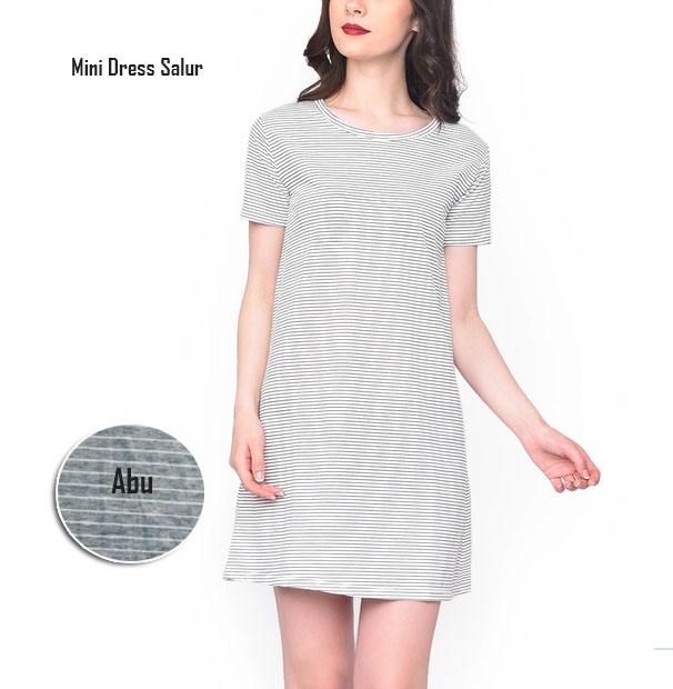 Mini dress salur abu@17rb min 3pcs ecer 22rb bahan spandek ,mini dress Ld80cm Pjg75cm Fit M (200gr)