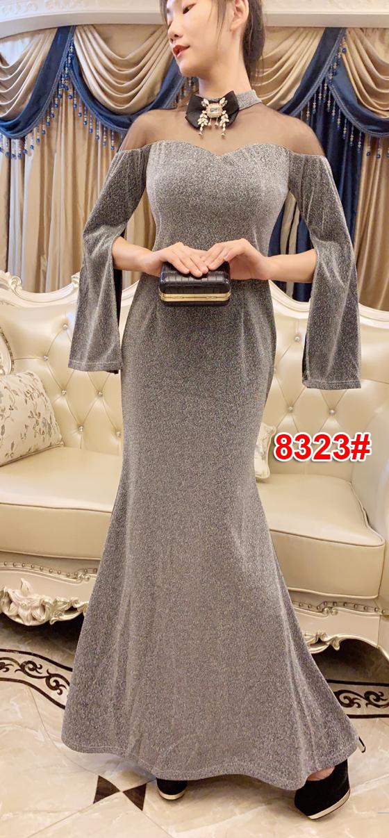 Longdress 8323 abu@175rb min 3pcs ecer 180rb bahan spandek bling Ld80cm Pjg130cm + kalung leher leher Fit M (500gr)