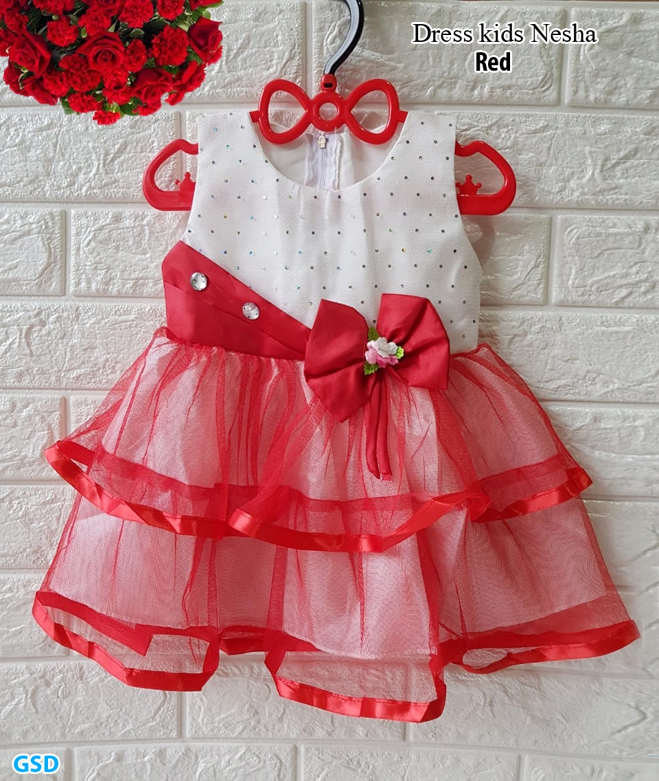 Dress kids nesha red@50rb min 3pcs ecer 55rb bahan saten kombi tile ,dress belakang sleting Ld52cm Pjg42cm fit anak 1-2thn (tidak ada ukuran tergantung anak) 120gr