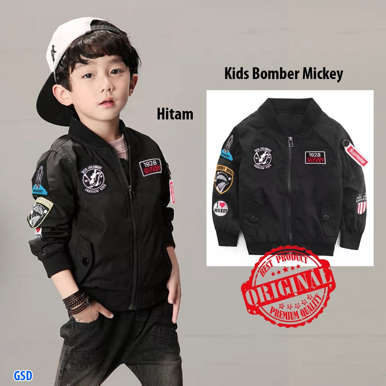 Kids bomber mickey hitam@79rb min 3pcs ecer 84rb bahan parasut lengan panjang sleting depan Ld80cm Pjg 48cm Fit anak 4-6thn (No Size tergantung anak) 350gr
