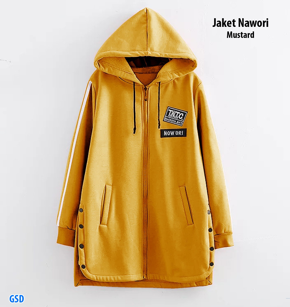 Jkt nawori mustard@65rb min 3pcs ecer 70rb bahan babyterry Ld102cm Pjg75cm ada saku kiri kanan dan kancing topi tali Fit L (450gr)