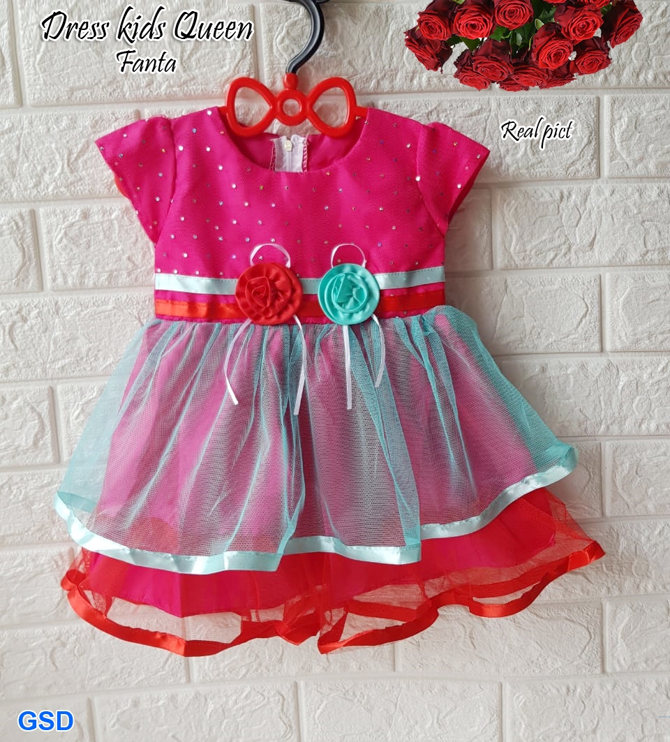 Dress kids queen fanta@50rb min 3pcs ecer 55rb bahan saten kombi tile Ld50cm Pjg45cm fit anak 1thn-2thn (tidak ada ukuran tergantung anak ) 120gr