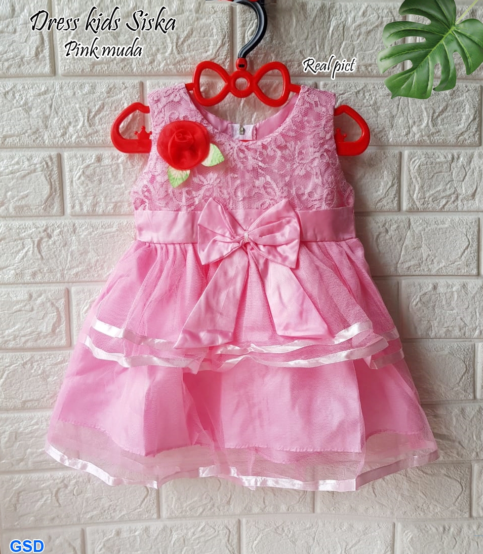 Dress kids siska pink muda@50rb min 3pcs ecer 55rb bahan saten kombi tile Ld50cm Pjg45cm fit anak 1thn-2thn (tidak ada ukuran tergantung anak ) 120gr