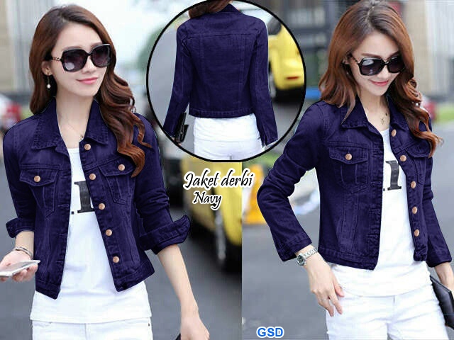 jaket derbi navy@73rb min 3pcs ecer 78rb bahan jeans lengan panjang kancing hidup Ld90cm Pjg43cm Fit L (400gr)