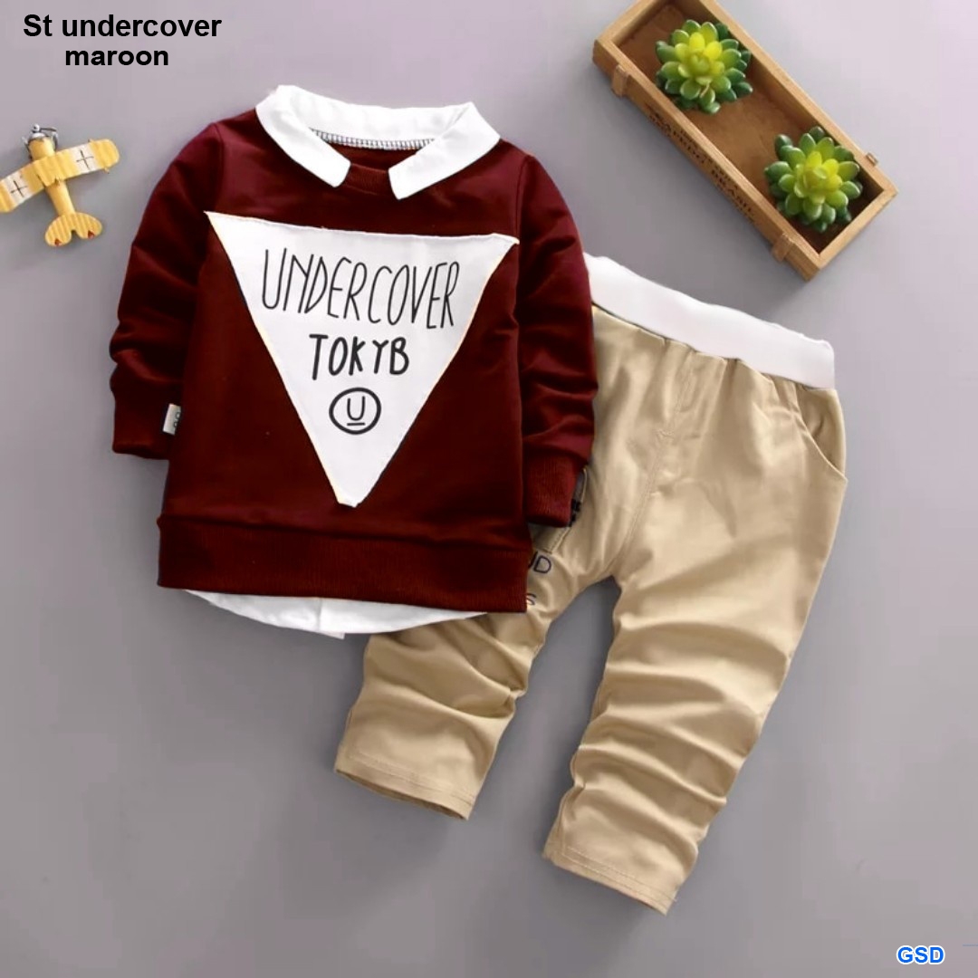 St undercover maroon@57rb min 3pcs ecer 62rb bahan babyterry full atasan krah Ld68cm Pjg45cm +celana Pjg58cm ada saku Fit 3-5thn (tidak ada ukuran tergantung anak) 350gr