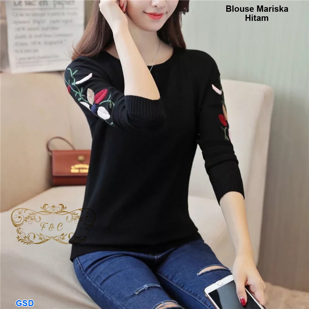 Blouse mariska hitam@42rb min 3pcs ecer 47rb bahan babyterry Ld90cm Pjg55cm dan tangan leher ban rip asli semua Fit L (200gr)