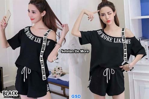 St be more hitam@58rb min 3pcs ecer 63rb bahan babyterry Ld90cm Pjg60cm+ celana pinggang full karet Pjg 30cm ada kantong kiri kanan Fit L (300gr)