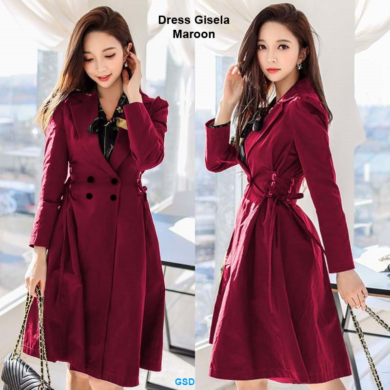 Dress gisela maroon@70rb min 3pcs ecer 75rb bahan crepe,dress lengan panjang kancing hidup,pinggang kiri kanan ada ring tali Ld100cm Pjg80cm Fit M (350gr)