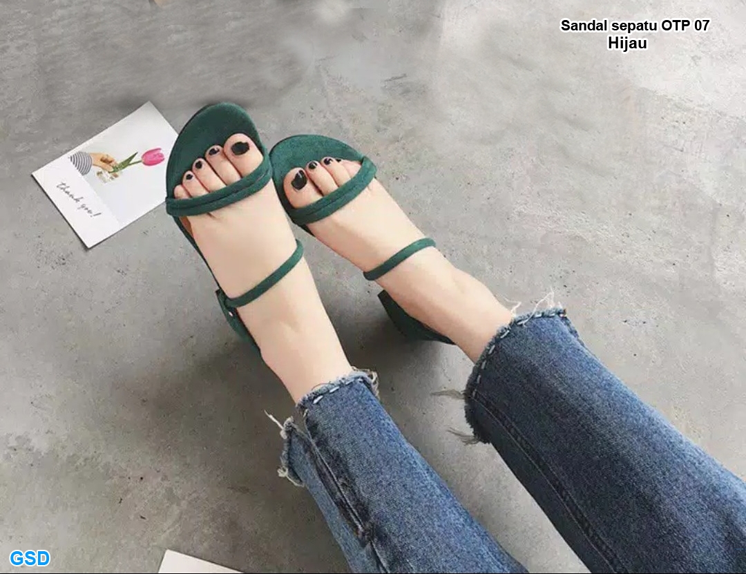Sandal otp 07 hijau@40rb seri 5psg (Size 36.37.38.39.40) ecer 45rb bahan bludru tinggi 3cm (420gr)