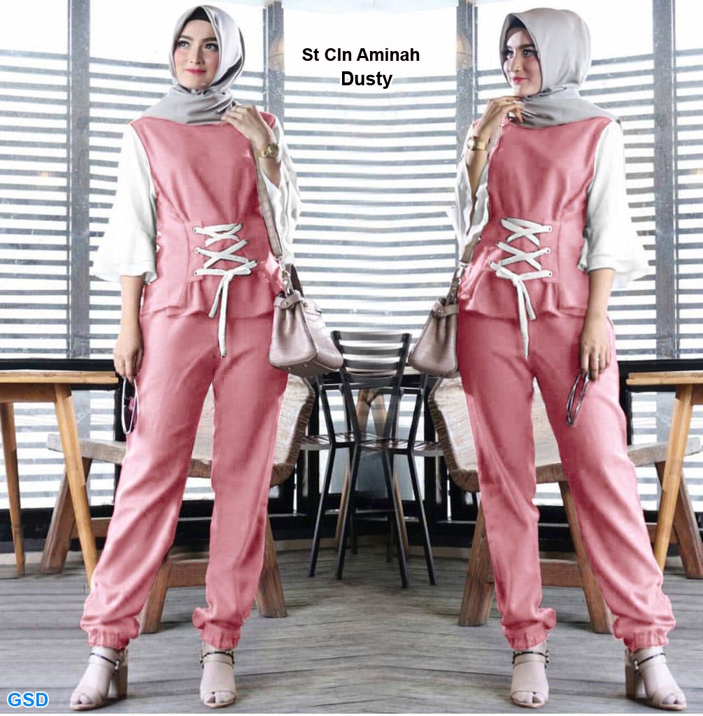St cln aminah dusty@75rb min 3pcs ecer 80rb bahan baletoli kombi katun ,blus lengan panjang terompet depan seleting ,pinggang ada tali ikat Ld94cm Pjg62cm + celana pinggang dan lengan kaki karet Pjg90cm Fit M No Pasmina (350gr)